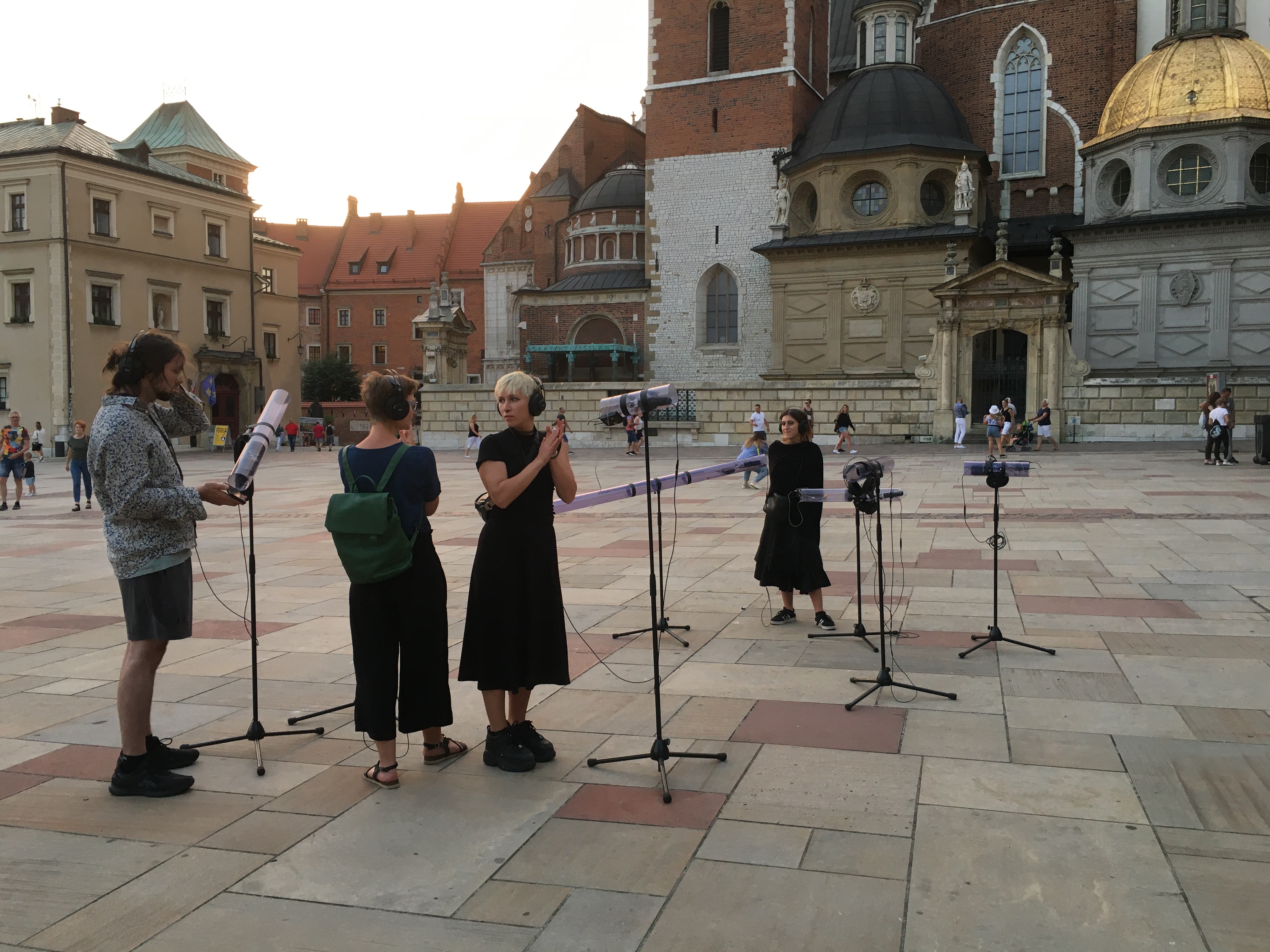 4 additional Stands with pvc tubes without microphones to listen directly by the ears of the pedestirans