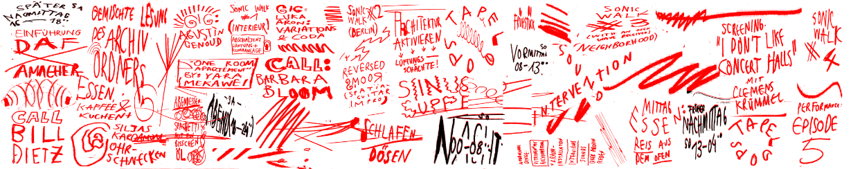For an entire day, we will gather fans—welcome new ones and invite long-time followers to exchange their thoughts. Together, we aim to reconstruct the relationship between Berlin’s institutions and the US artist. We will listen to archival materials, trace connections, and find rhythms. This involves holding on to and letting go of how something reaches the ear, using movement to pay attention to shifts in our acoustic environment, and exploring how the presence of others shapes our listening experience.