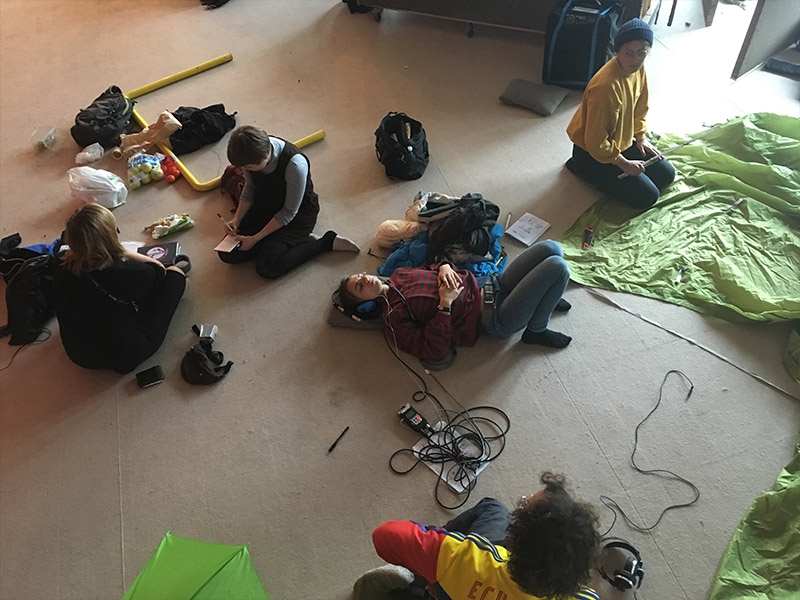 DAF Struttura was a light and sound installation that functions as a research and performance environment. For four days, during the Fair, Struttura was a stage, a workspace, a thinking place, an archive, a radio station, a recording studio, and an art space. Its coordination is based on collective learning and self-organization. Struttura opened at various times to members of the public. The audience had the opportunity to tune in via a short-throw radio transmission, join sonic walks, or enter within the struttura to hear lecture-performances, discussions, acoustic experiments, stagings of archival recordings, or new compositions. These was experimentally documented by the school, and a publication capturing these sound texts will be collectively conceived and launched early next year.